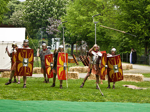 Wir sind eine Römergruppe für experimentelle Geschichte, welche die „altösterreichische“ – in Carnuntum (Petronell, NÖ) stationierte – Fünfzehnte Legion Apollinaris wieder zu neuem Leben erwachen lässt. Unter wissenschaftlicher Beratung wird das Leben und Kämpfen der römischen Legionärsinfanterie und -kavallerie Mitte des 1. Jhdts.n.Chr. originalgetreu nachempfunden.