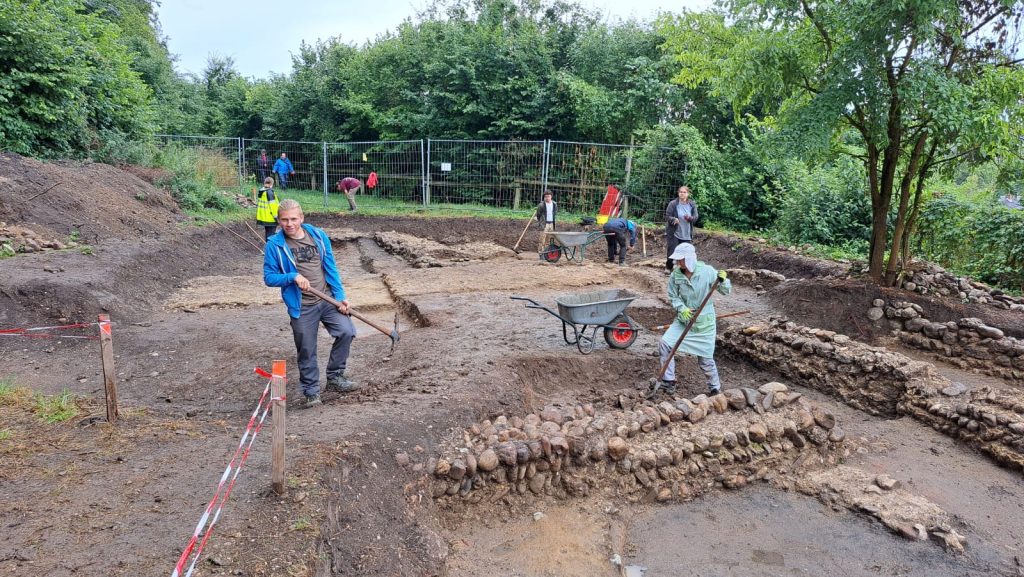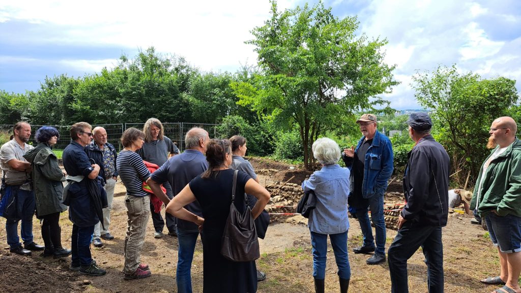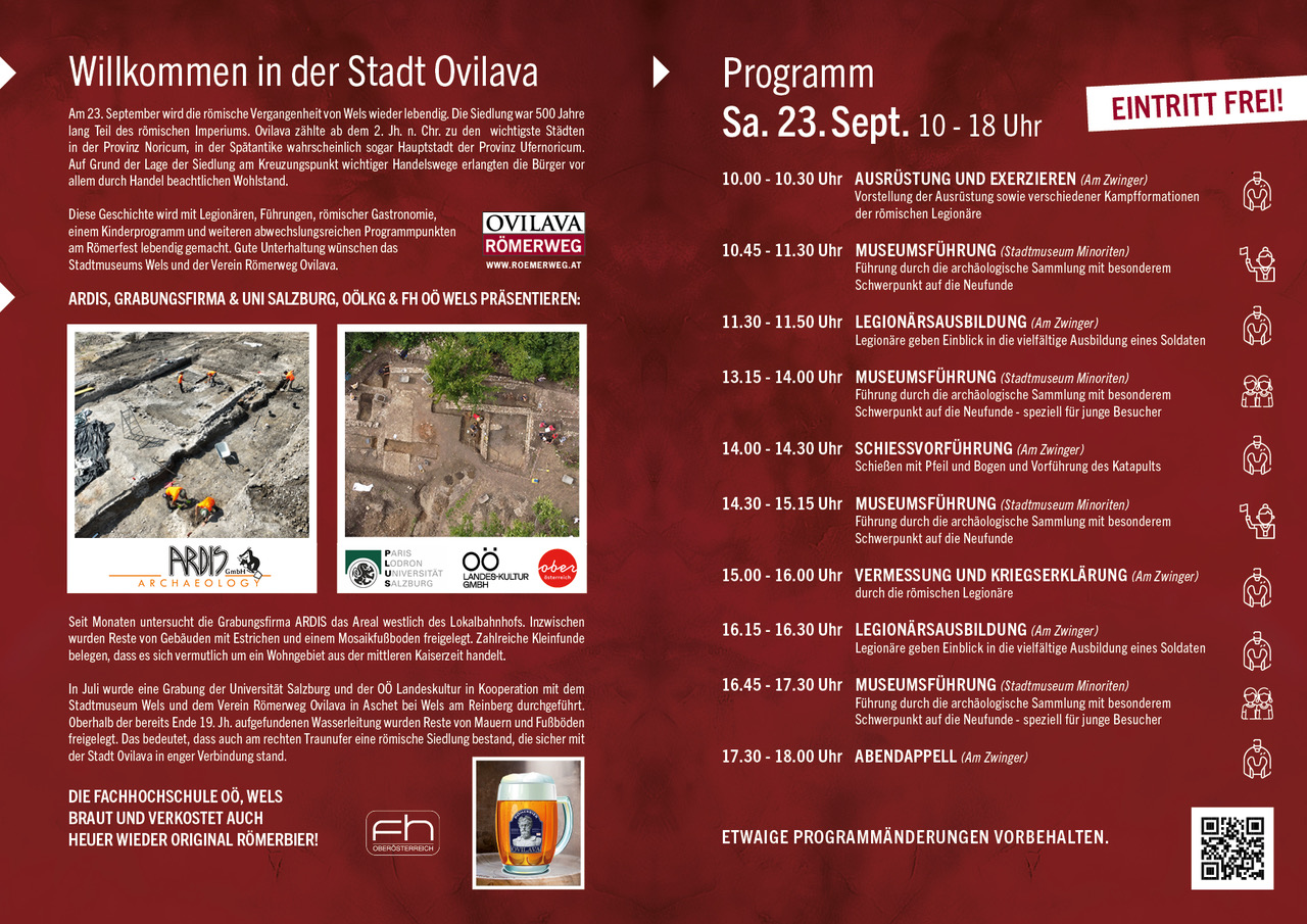 Die Fundstelle ist bereits seit längerem bekannt. 2022 wurde von GeoSphere Austria eine geophysikalische Prospektion durchgeführt. Dabei wurden Mauerzüge festgestellt, die einem großen Gebäudekomplex zugewiesen werden können. Die Lage an der Terrassenkante bot sicher einen beeindruckenden Ausblick über die Traun auf die gegenüber gelegene Stadt Ovilava/Wels. Bei der Grabung 2023 wurden Teilbereiche dieser Anlage untersucht. Der Erhaltungszustand ist in einigen Bereichen sehr gut, in anderen hat man die Mauern inkl. Fundament geplündert, nur die Estrichböden sind übergeblieben. Sehr schön nachvollziehbar waren auch mehrere Umbauphasen. An Funden kamen neben zahlreichen Keramikfragmenten über 60 Münzen und einige Highlights, wie etwa Schuppen von einem römischen Brustpanzer oder ein Eisenmesser inkl. erhaltenem Beingriff zu Tage. Das Fundmaterial erlaubt eine zeitliche Einordnung in das 2./3. Jahrhundert n. Chr. Von einem gehobenen Ausstattungsluxus zeugen Wandmalereifragmente. Außerdem wurde am Rand der Grabungsfläche ein kleiner Teil eines mit Ziegelsplitt angereicherten Estrichbodens freigelegt, wie er in der Regel in „Nassräumen“ verwendet wird (ein Teil des Badetraktes?). Ob hier ein Zusammenhang mit der römischen Wasserleitung besteht, die Ende des 19. Jahrhunderts westlich der Fundstelle beim Bau der Lokalbahn gefunden wurde, konnte nicht geklärt werden. Diese Leitung führte wahrscheinlich über die Traun und versorgte Ovilava/Wels mit Trinkwasser. In den letzten Grabungstagen wurde ein aus Ziegeln gesetzter Ofen entdeckt, der nur mehr oberflächig dokumentiert werden konnte. Die Größe sowie die Konstruktion aus Ziegel deuten auf einen Backofen hin. Die Untersuchung dieses Ofens sowie des möglichen Badetraktes sind im kommenden Jahr geplant.