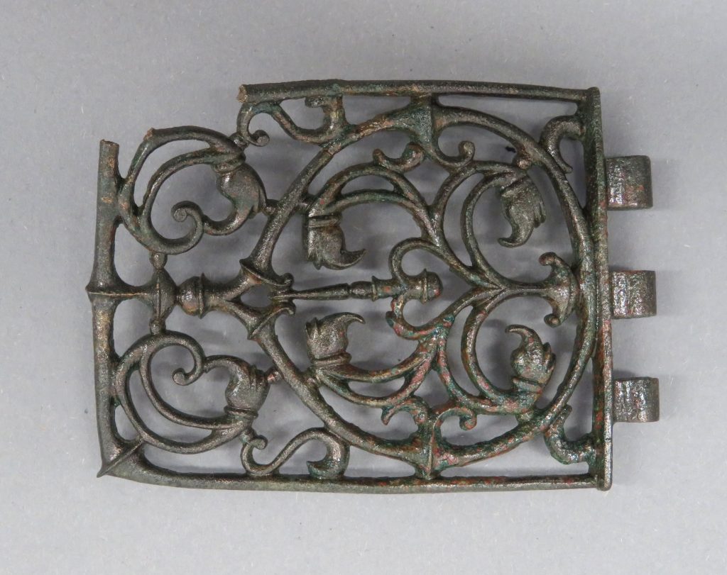 Der rechteckige verzierte Beschlag war Teil des Balteus, dem Schwertgehänge eines römischen Soldaten.