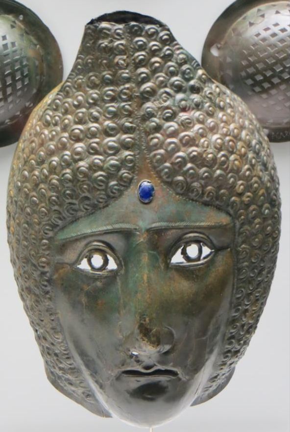 Der Vergleich mit Stücken, die aus einem Verwahrfund in Eining (Bayern) stammen, zeigt, dass es sich um einen Gesichtshelm mit sogenannter orientalischer Maske handelt. Diese Helme wurden von römischen Reitersoldaten vorwiegend bei Paraden getragen.