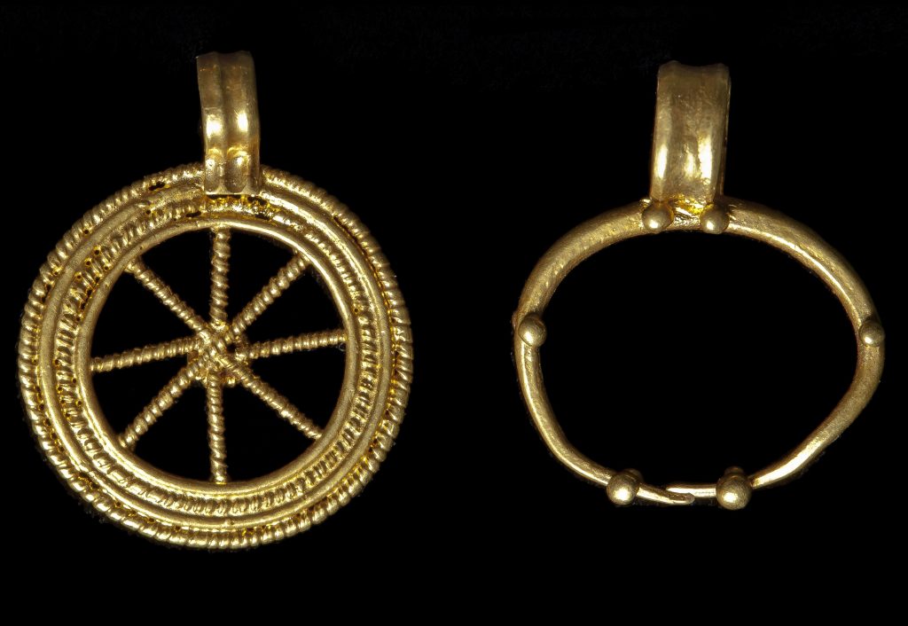 Anfangs ging man aufgrund der Fundumstände – Westost-Orientierung der Verstorbenen, Tiefe des Grabes und Pferdebestattung – von einer bajuwarischen Bestattung aus dem 7. Jh. n. Chr. aus. Einzig die zwei goldenen Anhänger deuteten in die Römerzeit. Schmuck wird allerdings immer wieder über lange Zeit weiterverwendet. Der Schmuck sowie die Körper- haltung der Bestatteten führte zur Annahme es handle sich um eine Frau und einen Mann.